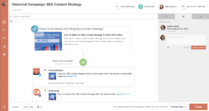 One feature that we particularly love is the fact that we can sync all our social media networks to the calendar, which eliminates the need to send a message individually to all our social media accounts. This saves valuable time that can best be spent elsewhere. To save even more time, CoSchedule allows us to send social media messages in bulk where we can send out dozens at one time. Check out the example of a social campaign below.