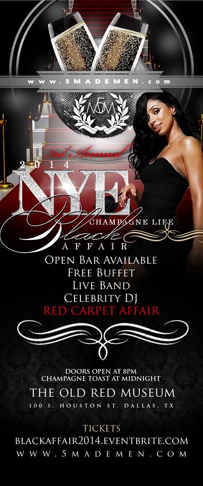 Where will you be this NYE? Join Tha Afterparty Radio as 5 Made Men Entertainment has delicately created another night of elegance to suit your lavish pleasures. The 3rd Annual NYE Event: Champagne Life All Black Engagement will be held at the Old Red Museum in Downtown Dallas. Tha Afterparty Radio We will be conducting red carpet interviews and broadcasting LIVE from the B side.