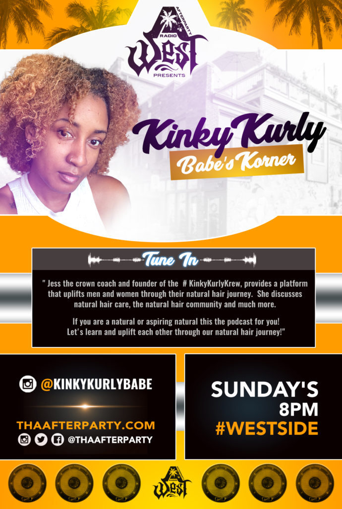 Tha Afterparty Radio is pleased to announced a fresh new edition to the Party West on Sundays, 8 pm PST, “Kinky Kurly Babe’s Korner.” Get ready to join Jess the Crown Coach as she navigates listeners through “their natural hair journey.” As founder of #KinkyKurlyKrew, Jess is uniquely qualified to provide “a platform that uplifts […]