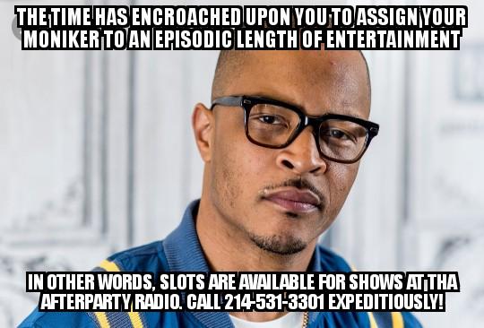The time is now for you to sign up for a slot at Tha Afterparty Radio. We have great slots available for you to host your own radio show on the Party South’s A and B sides, along with The Party Wests’ West Side. Just think — your own show with your own platform — […]