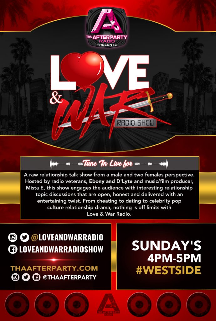 Tha Afterparty Radio is pleased to welcome a new addition to the party. “Love & War” Radio Show takes a raw look at relationships from the perspective of one male and two females in a modern twist on the battle of the sexes. Radio vets Ebony and D’Lyte join forces with music and film producer […]
