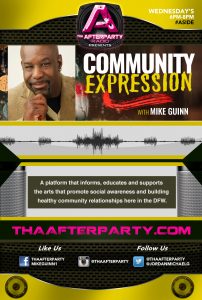 Tha Afterparty Radio is pleased to welcome a new addition to the party. Stay connected with your community and neighbors by tuning into “Community Expression” with Mike Gunn. Mr. Gunn bills his show as a “platform that informs, educates and supports the arts that promote social awareness and building healthy community relationships here in the DFW.” The show airs on Wednesdays on the A Side 6-8 pm CST.